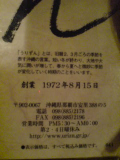 22:00 国際通りを少し外れたトコにある沖縄居酒屋「うりずん」で夕飯。