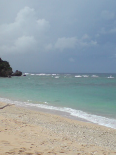 14:30 カレがオススメの長浜ビーチに立ち寄るため海辺をドライブ。